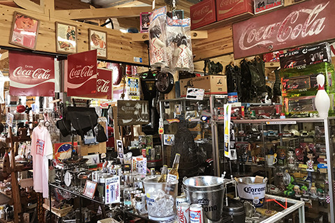 店内には、代表的なアメリカン雑貨以外にも、ミリタリーグッズ、キャンプ用品、レトロ感満際の食器やインテリア雑貨、子供玩具、食品玩具、キャラクターグッズ、フィギュア、バイクや飛行機・戦闘機・戦車の模型、時計やネックレス、レトロ看板やアメリカンなブリキの看板、そして、世界に一品しかないレアものなど。。。